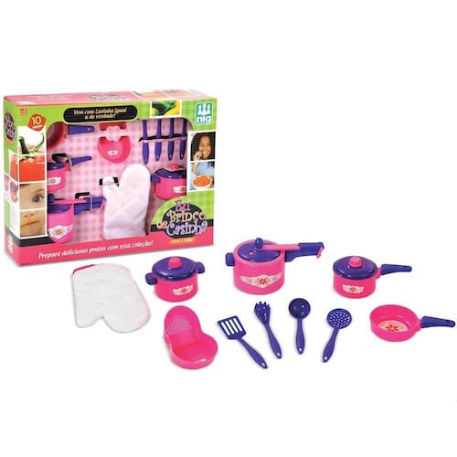 As crianças vão preparar deliciosas receitas com este Kit Panelinhas - Eu Brinco de Casinha - Arroz e Feijão - Nig Brinquedos. Ele é igual aos de verdade. Contém panela de pressão, caçarola, panela funda com tampa, frigideira, escorredor de arroz, luvinha em tecido e quatro talheres grandes (escumadeira, concha, espátula e pegador de macarrão). INFORMAÇÕES: • Produto: Eu Brinco de Casinha - Arroz e Feijão • Marca: Nig Brinquedos • Recomendação: para crianças a partir de 2 anos de idade AVISO: • As imagens são meramente ilustrativas. As cores e estampas dos produtos podem ter variações. As informações são de responsabilidade do fabricante ou fornecedor.
