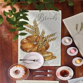 Kit Pano De Copa Felpudo Teka Primore Estampas Pães 6 Pçs - Cinza