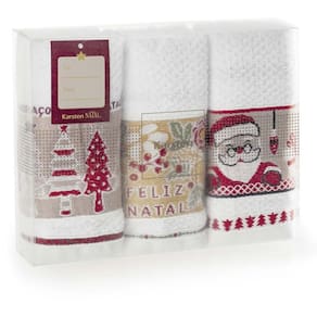 Produzido em 91% algodão e 9% poliéster. O kit de panos de copa Festivos Karsten, é um lindo kit preparado com carinho para presentear. Possui 3 toalhas bordadas com temas natalinos para acompanhar na época mais linda do ano com um material de ótima absorção e durabilidade superior. Conheça a linha de natal com toalhas de lavabo e guardanapos exclusivos e renove seu lar com charme e sofisticação. Mais do que panos de copa, são decorações que vão colorir sua cozinha com bordados delicados para essa data especial de confraternização em família. Além de lindos, os panos são de excelente absorção e qualidade superior. Foto meramente ilustrativa.