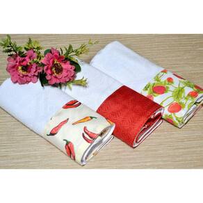 Kit Pano de Pratos 3 pçs - Branco e Vermelho