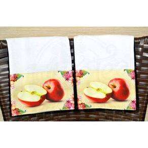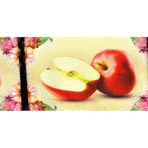 Confeccionados em tecido 100% algodão na cor branco, com barrado digital colorido, com estampas de maçã e flores.