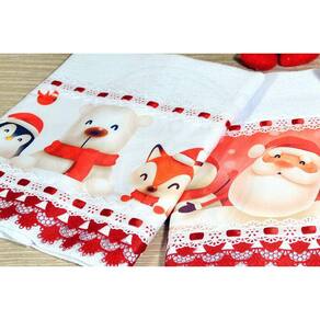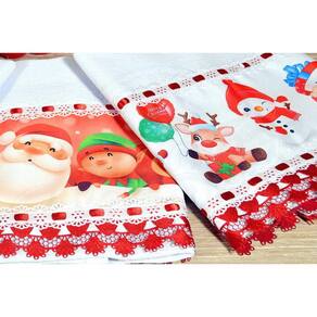 kit Pano de Pratos com Barrado 3 pçs - Natal Alegre