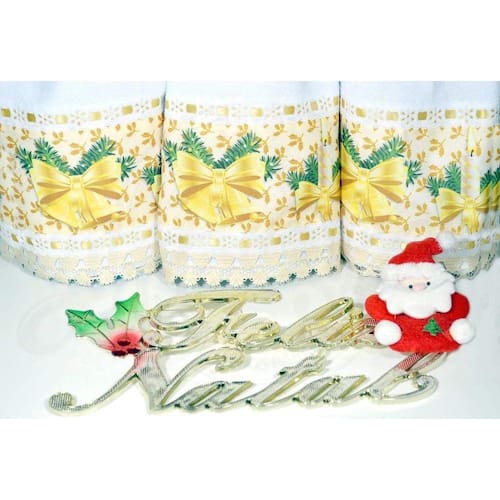 kit Pano de Pratos com Barrado 3 pçs - Sinos Natalinos