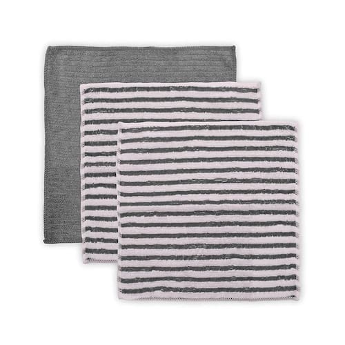 Kit Pano Multiuso Buettner Limpa Enxuga Microfibra 3 Pçs Cooking Cinza Kit Pano Multiuso 3pçs Composição 85% Poliester 15% Poliamida Conteudo da Embalagem 1 Kit pano Multiuso 3pçs, sendo duas toalhas listradas 25x25cm e uma toalha lisa 28x28cm. Instruções de lavagem Imagem ilustrativa Cores podem variar de acordo com a calibragem do monitor