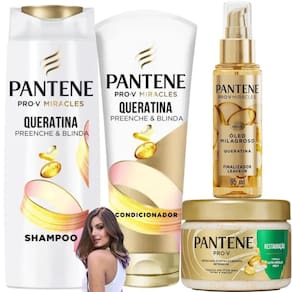 Kit pantene pro-v miracles óleo milagroso tratamento mascara Sham+con+oleo+cronograma: kit.3 Bem vindo a a loja flocus. É um prazer tê-lo a como nosso a cliente Anúncio variável. Escolha os itens que melhor lhe atender, porém para cabelos perfeitamente equilibrados, recomendamos que utilize a linha completa pantene pro-v miracles para uma reparação contra danos causados até pelo calor. Cabelos mais resistentes e brilhantes. Conteúdo do kit: 1 pantene pro-v miracles shampoo queratina - 300 ml 1 pantene pro-v miracles condicionador queratina - 250 ml 1 pantene pro-v miracles queratina oleo milagroso - 95ml 1 pantene pro-v mascara reparação de queratina hidratação ou nutrição umectante ou restauração 270ml Você já reparou o quanto você expõe o seu cabelo ao calor sol, chapinha, secador, modelador de cachos... . Apresentamos o shampoo e condicionador pantene queratina preenche & blinda, nossa fórmula pro-v miracles com queratina. O shampoo penetra no cabelo, fazendo uma limpeza e blindagem que protege, enquanto o condicionador identifica e preenche fios danificados, para alinhar e selar, facilitando o desembaraço. Use o shampoo e condicionador e a linha completa preenche & blinda para uma reparação contra danos causados até pelo calor. Cabelos mais resistentes e brilhantes. Fórmula que não pesa com queratina e pro-vitamina b5, para cabelos danificados. Ph balanceado. Óleo milagroso finalizador, uma experiência única de pantene. Nutrição, brilho imbatível e proteção em um só óleo capilar. Fios macios e brilhantes, uma fórmula que não pesa com 3x mais pro-vitamina b5. Proteção contra danos futuros. cutículas seladas e alinhadas, para um cabelo mais saudável. Precisa de uma solução hidratante para os danos a máscara capilar hidratação pantene é para você. A nova fórmula nutri-pérolas pro-v é uma infusão reparadora contra o dano do calor; contém pérolas pro-vitaminas solúveis e óleo de coco, para cabelos até 100% mais fortes e hidratados. Cabelos com frizz e pontas duplas máscara capilar nutrição pantene contém pérolas pro-vitaminas solúveis e óleo de amêndoas, para fios até 100% mais fortes e preenchidos. Solução restauradora para os danos máscara capilar restauração pantene contém pérolas pro-vitaminas solúveis e aminoácidos, para cabelos até 100% mais fortes e macios. Indicação: Cabelo danificado; Cabelo opaco; Cabelo sem brilho. Benefícios: Fórmula que não pesa; Brilho imbatível; 3x mais pro-vitamina b5; O shampoo penetra no cabelo, fazendo uma limpeza e blindagem que protege O condicionador identifica e preenche fios danificados, para alinhar e selar, facilitando o desembaraço A linha completa preenche & blinda repara o contra danos, causados até pelo calor Cabelos mais resistentes e brilhantes Contém queratina e pro-vitaminas b5, para cabelos danificados Ph balanceado Fórmula que não pesa Modo de uso: 1passo: shampoo: Aplique sobre o cabelo úmido, massageie suavemente o couro cabeludo com a ponta dos dedos em movimentos circulares Enxágue e repita se necessário. 2passo: máscara: Coloque o produto na palma da mão, Misture com os dedos até dissolver as pérolas pro-v no creme. Aplique no cabelo úmido e limpo, Deixe agir por até 30 minutos Enxágue. Repita semanalmente. 3passo: condicionador: Aplique uniformemente no cabelo úmido. Penteie com os dedos. Enxágue bem. 4passo: óleo milagroso: Aplique uma quantidade do tamanho de uma moeda nas mãos, Espalhe pelo comprimento e nas pontas, Pode ser no cabelo seco ou molhado, Sem enxágue. Agradecemos por escolher a loja flocus e por confiar em nós para cuidar da beleza dos seus cabelos. Em caso de dúvidas, favor enviar sua pergunta Flocus