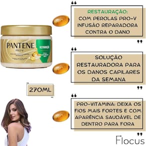 Kit pantene pro-v miracles óleo milagroso tratamento mascara Sham+con+oleo+cronograma: kit.3 Bem vindo a a loja flocus. É um prazer tê-lo a como nosso a cliente Anúncio variável. Escolha os itens que melhor lhe atender, porém para cabelos perfeitamente equilibrados, recomendamos que utilize a linha completa pantene pro-v miracles para uma reparação contra danos causados até pelo calor. Cabelos mais resistentes e brilhantes. Conteúdo do kit: 1 pantene pro-v miracles shampoo queratina - 300 ml 1 pantene pro-v miracles condicionador queratina - 250 ml 1 pantene pro-v miracles queratina oleo milagroso - 95ml 1 pantene pro-v mascara reparação de queratina hidratação ou nutrição umectante ou restauração 270ml Você já reparou o quanto você expõe o seu cabelo ao calor sol, chapinha, secador, modelador de cachos... . Apresentamos o shampoo e condicionador pantene queratina preenche & blinda, nossa fórmula pro-v miracles com queratina. O shampoo penetra no cabelo, fazendo uma limpeza e blindagem que protege, enquanto o condicionador identifica e preenche fios danificados, para alinhar e selar, facilitando o desembaraço. Use o shampoo e condicionador e a linha completa preenche & blinda para uma reparação contra danos causados até pelo calor. Cabelos mais resistentes e brilhantes. Fórmula que não pesa com queratina e pro-vitamina b5, para cabelos danificados. Ph balanceado. Óleo milagroso finalizador, uma experiência única de pantene. Nutrição, brilho imbatível e proteção em um só óleo capilar. Fios macios e brilhantes, uma fórmula que não pesa com 3x mais pro-vitamina b5. Proteção contra danos futuros. cutículas seladas e alinhadas, para um cabelo mais saudável. Precisa de uma solução hidratante para os danos a máscara capilar hidratação pantene é para você. A nova fórmula nutri-pérolas pro-v é uma infusão reparadora contra o dano do calor; contém pérolas pro-vitaminas solúveis e óleo de coco, para cabelos até 100% mais fortes e hidratados. Cabelos com frizz e pontas duplas máscara capilar nutrição pantene contém pérolas pro-vitaminas solúveis e óleo de amêndoas, para fios até 100% mais fortes e preenchidos. Solução restauradora para os danos máscara capilar restauração pantene contém pérolas pro-vitaminas solúveis e aminoácidos, para cabelos até 100% mais fortes e macios. Indicação: Cabelo danificado; Cabelo opaco; Cabelo sem brilho. Benefícios: Fórmula que não pesa; Brilho imbatível; 3x mais pro-vitamina b5; O shampoo penetra no cabelo, fazendo uma limpeza e blindagem que protege O condicionador identifica e preenche fios danificados, para alinhar e selar, facilitando o desembaraço A linha completa preenche & blinda repara o contra danos, causados até pelo calor Cabelos mais resistentes e brilhantes Contém queratina e pro-vitaminas b5, para cabelos danificados Ph balanceado Fórmula que não pesa Modo de uso: 1passo: shampoo: Aplique sobre o cabelo úmido, massageie suavemente o couro cabeludo com a ponta dos dedos em movimentos circulares Enxágue e repita se necessário. 2passo: máscara: Coloque o produto na palma da mão, Misture com os dedos até dissolver as pérolas pro-v no creme. Aplique no cabelo úmido e limpo, Deixe agir por até 30 minutos Enxágue. Repita semanalmente. 3passo: condicionador: Aplique uniformemente no cabelo úmido. Penteie com os dedos. Enxágue bem. 4passo: óleo milagroso: Aplique uma quantidade do tamanho de uma moeda nas mãos, Espalhe pelo comprimento e nas pontas, Pode ser no cabelo seco ou molhado, Sem enxágue. Agradecemos por escolher a loja flocus e por confiar em nós para cuidar da beleza dos seus cabelos. Em caso de dúvidas, favor enviar sua pergunta Flocus