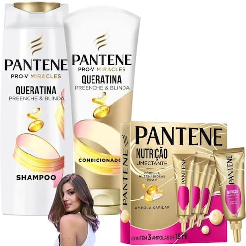 Kit Pantene Queratina Ampola Nutrição Umectante Pro-VMiracle Bem vindo a a loja Flocus. É um prazer tê-lo a como nosso a cliente CONTEÚDO DO KIT: 1 Pantene Pro-V Miracles Shampoo Queratina - 300 ml 1 Pantene Pro-V Miracles Condicionador Queratina - 250 ml 3 u. pantene pro-v Ampola Tratamento Nutrição Umectante 15ml cada Você já reparou o quanto você expõe o seu cabelo ao calor sol, Chapinha, Secador, modelador de cachos... . Apresentamos o shampoo e condicionador Pantene Queratina Preenche & Blinda, nossa fórmula Pro-V Miracles com Queratina. O shampoo penetra no cabelo, fazendo uma limpeza e blindagem que protege, enquanto o condicionador identifica e preenche fios danificados, para alinhar e selar, facilitando o desembaraço. Use o shampoo e condicionador e a linha completa Preenche & Blinda para uma reparação contra danos causados até pelo calor. Cabelos mais resistentes e brilhantes. Fórmula que não pesa com Queratina e Pro-Vitamina B5, para cabelos danificados. Ph balanceado. Descubra a nova fórmula da Ampola Capilar Pantene com Pérolas Pro-Vitaminas solúveis, que vai completar o seu cronograma capilar. Possui 2X mais poder nutritivo. Sua fórmula com Pérolas Pro-V que se dissolve no creme e Bambu é um preenchimento capilar com milhões de lipídios concentrados, deixando os cabelos fortes e nutridos. Ideal para cabelos com frizz ou pontas duplas. Transformação como você nunca viu, nem sentiu antes pro-vitaminas. extrato de Bambú. pérolas Pro-Vitaminas. INDICAÇÃO: Cabelo danificado; Cabelo opaco; Cabelo sem brilho. MODO DE USO: 1passo: Shampoo: Aplique sobre o cabelo úmido, massageie suavemente o couro cabeludo com a ponta dos dedos em movimentos circulares Enxágue e repita se necessário. Tire o excesso de água. 2passo: Ampola Pro-V: coloque o produto na palma da mão, misture com os dedos até dissolver as pérolas Pró-V no creme aplique uniformemente no cabelo úmido, do meio até as pontas. deixe gir por 3 minutos enxague bem. pode ser como potencializador na sua rotina de cronograma capilar. 3passo: Condicionador: Aplique uniformemente no cabelo úmido. Penteie com os dedos. Enxágue bem. Use a linha completa Queratina Preenche & Blinda para uma reparação contra danos causados até pelo calor. Cabelos mais resistentes e brilhantes. Agradecemos por escolher a Loja Flocus e por confiar em nós para cuidar da beleza dos seus cabelos. Em caso de dúvidas, favor enviar sua pergunta Flocus Marca: Não Informado