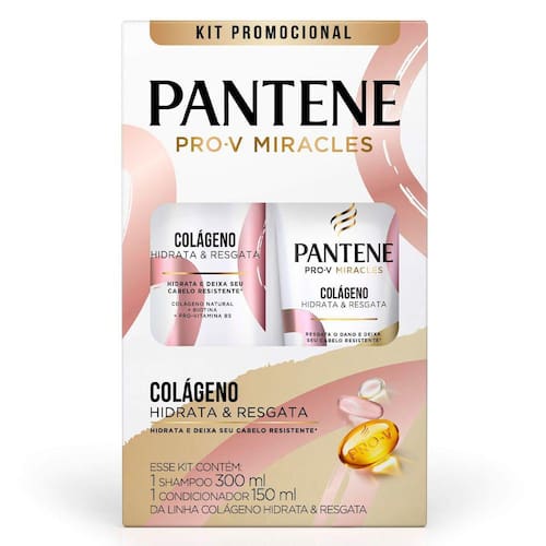 O Kit Pantene Shampoo 300ml + Condicionador 150ml Colágeno é especialmente indicado para cabelos danificados, tingidos e quimicamente tratados. Possui fórmula enriquecida com colágeno vegetal, biotina e pro-vitamina B5. Juntos esses ativos proporcionam nutrição capilar da raiz até as pontas e protege o cabelo dos danos associados às constantes transformações. Aumenta a resistência à quebra, sendo ideal para cabelos tingidos, descoloridos ou com luzes. Além disso, resgata profundamente até mesmo os fios mais danificados.