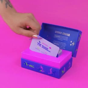 Baralho interativo com 69 cartas, projetado para promover diálogo e interação entre participantes. Contém instruções e desafios variados, incluindo cartas que reforçam consentimento e segurança.