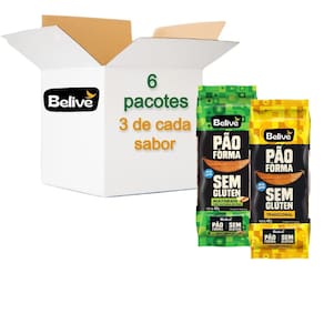 Kit Pão de Forma BELIVE Grãos e Tradicional 400g 3 de cada Ficha Técnica: Produto: Kit Pão de Forma BELIVE Grãos e Tradicional 400g 3 de cada Conteúdo do Kit:3 unidades - Pão de Forma BELIVE Tradicional Sem Glúten 400g3 unidades - Pão de Forma BELIVE Multigrãos Sem Glúten 400gPeso líquido por unidade: 400gIngredientes Tradicional Sem Glúten: Mistura de farinhas sem glúten farinha de arroz, fécula de batata, farinha de mandioca , água, óleo de girassol, açúcar, sal, fermento biológico e emulsificante mono e diglicerídeos de ácidos graxos .Ingredientes Multigrãos Sem Glúten: Mistura de farinhas sem glúten farinha de arroz, fécula de batata, farinha de mandioca , água, grãos aveia, linhaça, chia , óleo de girassol, açúcar mascavo, sal, fermento biológico e emulsificante mono e diglicerídeos de ácidos graxos .Benefícios:Variedade de saboresTextura maciaLivre de glútenModo de Conservação: Armazenar em local fresco e seco. Consumir em até 3 dias após aberto.Modo de Preparo: Pronto para consumo. Pode ser consumido diretamente ou levemente aquecido.Indicações de Uso: Ideal para lanches, sanduíches e torradas. Variedade para diferentes momentos do dia.Alergênicos: Contém aveia. Pode conter traços de amêndoas, castanha-de-caju, castanha-do-pará e leite