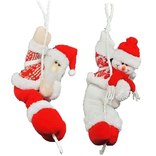 Surpreenda o espírito natalino com o nosso incrível Kit Papai Noel e Boneco de Neve de Pelúcia Vermelho e Branco na Corda Rapel de 30cm!