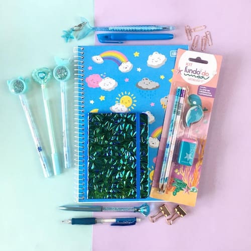 Kit Papelaria Tons de Azul Fofa Kawaii Cor Azul Escolar Neon Pastel Kit Papelaria Tons de Azul Fofa Kawaii Cor Azul Escolar Neon Pastel - Kawaii O Kit Papelaria Tons de Azul Fofa Kawaii é perfeito para você que adora organização e estilo. Composto por uma caderneta capa dura de 80 folhas, um caderno universitário azul com espiral, uma lapiseira, uma borracha, um apontador com depósito de 40cm, dois lápis com estampas , uma marca-texto, três canetas fofas com pingente glitter ou animadas , uma caneta formato de diamante e uma caneta formato de sereia. Além disso, o kit também conta com cinco clips fofos em cores e dois prendedores. Com medidas ideais para levar na mochila, a caderneta possui 14,5 x 10,5 cm, enquanto o caderno universitário tem 17,7 x 24,2 cm. Os itens como lápis, borracha e apontador são enviados aleatoriamente nas opções pastel ou neon. As canetas fofas com glitter também são enviadas de forma aleatória. Tenha uma papelaria completa e cheia de estilo com o Kit Papelaria Tons de Azul Fofa Kawaii. Sua rotina de estudos e trabalho nunca mais será a mesma. Diferenciais do Produto: Caderneta capa dura com 80 folhas Caderno universitário azul com espiral Lapiseira, borracha e apontador em opções pastel ou neon Lápis com estampas tom pastel, estampa de sereia ou estampa de sorvete Canetas fofas com pingente glitter ou animadas Canetas formato de diamante e sereia Clips fofos e prendedores em cores Mais sobre o Produto: O Kit Papelaria Tons de Azul Fofa Kawaii oferece todos os itens essenciais para uma rotina de estudos, trabalho ou organização pessoal. A caderneta capa dura e o caderno universitário garantem durabilidade e praticidade. A lapiseira, borracha e apontador facilitam o dia a dia de escrita e desenho. Os lápis com estampas divertidas deixam qualquer atividade mais colorida. As canetas fofas com pingente glitter ou animadas dão um toque de estilo e criatividade. E os clips fofos e prendedores ajudam a organizar documentos e papéis de forma charmosa. Dicas de Uso: Utilize a caderneta capa dura para anotações rápidas, lembretes ou desenhos. O caderno universitário é ideal para aulas, anotações mais detalhadas e trabalhos. Experimente usar os lápis com estampas para trazer diversão e personalidade aos seus escritos. As canetas fofas com pingente glitter ou animadas são perfeitas para destacar informações importantes em seus estudos ou trabalhos. Use os clips fofos e os prendedores para organizar papéis, documentos e marcações de páginas. Ficha Técnica: Marca: Kawaii Peso: 400g Categoria: Kit Papelaria Dimensões da Caderneta: 14,5 x 10,5 cm Dimensões do Caderno Universitário: 17,7 x 24,2 cm Itens Inclusos: 1 Caderneta capa dura 80 folhas, 1 Caderno universitário azul com espiral, 1 Lapiseira, 1 Borracha, 1 Apontador com depósito 40 cm, 2 Lápis, 1 Marca-texto, 3 Canetas fofas com pingente glitter ou animadas, 1 Caneta formato de diamante, 1 Caneta formato de sereia, 5 Clips fofos, 2 Prendedores