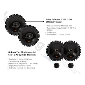 Kit Par de Alto Falantes 6 JBL FLEX4 6TRFX55 110W + Kit 2 Vias 6 JBL FLEX4 62VFX55 110W