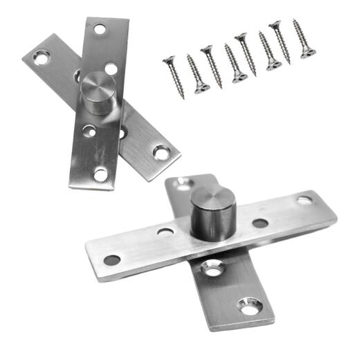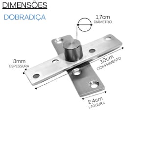 A embalagem leva 1 Kit de dobradiças pivotantes com acabaento em inox para 01 porta. É de fácil instalação, acabando com o uso de rebaixos nos caixilhos, portas e janelas. Apenas parafusar e pronto! Qualquer um pode instalar!