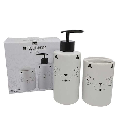 Kit para banheiro com 2 peças em cerâmica branco Kit para banheiro 2 peças em cerâmica fwb Kit para Banheiro 2 Peças - 1 Porta Sabonete - 1 Copo Cerâmica FWB Código de barras: 7908148586659 Peso: 0,650 Kg