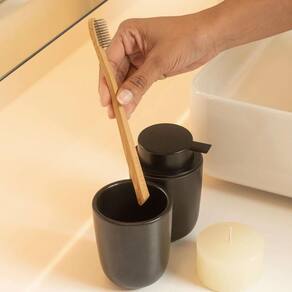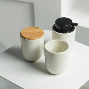 Detalhes do produtoExpressa personalidade na decoração do banheiroCombina texturas de pedras e mármores para um ambiente mais tranquiloInclui detalhes em bambu, promovendo sustentabilidadeUne sofisticação, funcionalidade e respeito ao meio ambienteInformações TécnicasMaterial:CERÂMICALinha:OsakaO kit para banheiro da Linha Osaka é a tradução da personalidade na decoração. A combinação de texturas de pedras e mármores traz a sensação de tranquilidade para os ambientes e o bambu promove a sustentabilidade dentro da sua casa.CuidadosLave com esponja macia e sabão neutro, enxague com água abundante. Não utilize produtos abrasivos que possam riscar o produto (ex. palha de aço). Caso a tampa de bambu apresente mofo, limpe-o com um pano umedecido em vinagre branco.Conteúdo da embalagem1 Porta Escova de Dente Osaka1 Porta Sabonete Líquido Osaka1 Porta Algodão e Cotonete Osaka