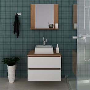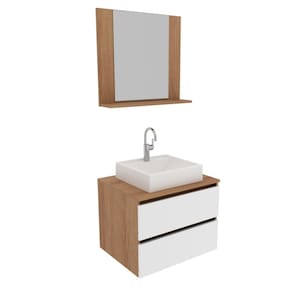 O Kit para Banheiro é a escolha ideal para transformar o seu espaço em um ambiente elegante e organizado. Com um design atual, ele oferece não apenas beleza, mas também funcionalidade, contribuindo para um banheiro agradável e útil. Produzido com materiais de alta qualidade, o kit garante durabilidade e resistência, criando um ambiente harmonioso e agradável para o seu dia a dia. CARACTERÍSTICAS TÉCNICAS: - Produzida em MDP de 15 mm - Acabamento UV na cor Amendôa e Branco - Acompanha Espelho - Cuba em Mármore Sintético - Balcão Suspenso - Gavetas com Corrediças Metálicas - Puxador tipo Cava *Kit Composto por Gabinete Suspenso (3607), Espelheira (3610) e Cuba (3630) INFORMAÇÕES TÉCNICAS: 3607: Alt. 46,5 cm x Larg. 60 cm x Prof. 46,9 cm x P. 15,9 kg 3610: Alt. 54 cm x Larg. 60 cm x Prof. 15,6 cm x P. 6,35 3630: Alt. 11,5 x Larg. 35 x Prof. 34 cm P. 5,5 kg INFORMAÇÕES ADICIONAIS: - ATENÇÃO: Não trabalhamos e não nos responsabilizamos pela montagem do móvel. Antes da montagem conferir se o produto está de acordo com o que comprou, produto montado e danificado pela montagem não será aceito troca. Montagem e instalação por conta do comprador. - As imagens ambientadas são meramente ilustrativas e podem apresentar itens que não compõe o produto. As cores do produto podem variar de acordo com o monitor, a iluminação do ambiente ou sua percepção visual. - Limpeza: Deve ser feita com pano macio e seco ou levemente. Não devem ser utilizados abrasivos como palha de aço e objetos cortantes. Garantia para defeitos de fabricação conforme Código de Defesa do Consumidor.