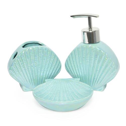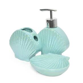 Kit para banheiro lavabo 3 peças sereia concha perolado Cor: verde Deixe seu banheiro ainda mais lindo com esse kit, possui pintura perolada que da ainda mais brilho e sofisticação para o ambiente, o kit conta com 1 porta sabonete liquido, 1 porta sabonete e 1 porta escovas de dente/pasta. Principais destaques: - peça confeccionada em cerâmica - medidas saboneteira liquida: 10 x 4,5 x 14cm largura x comprimento x altura - medidas saboneteira: 10 x 9,5 x 2,5cm largura x comprimento x altura - medidas porta escovas/pasta: 9,5 x 4,5 x 8,5cm largura x comprimento x altura