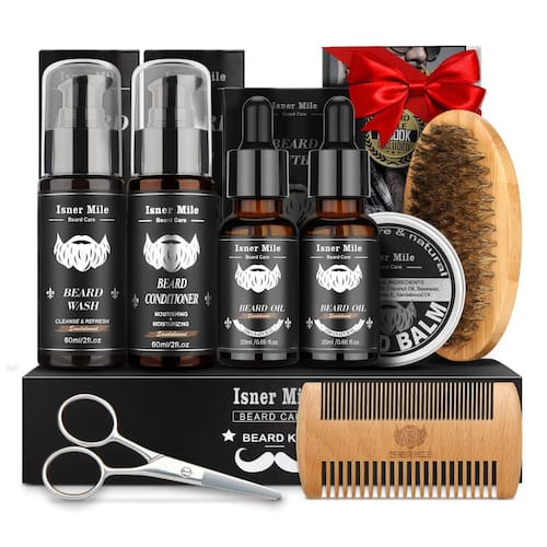 Este kit de cuidados oferece tudo o que é necessário para limpar, hidratar e modelar a barba. Os ingredientes naturais, como óleo de semente de uva, óleo de amêndoas doces, óleo de jojoba e óleo de argan, nutrem profundamente, suavizam e reduzem a coceira, proporcionando um toque suave e sedoso à barba.
