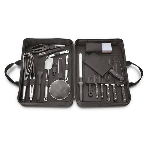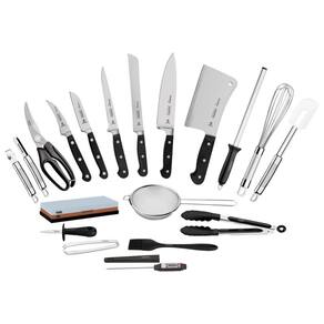 Se você é um amante da boa gastronomia e não abre mão de receber seus amigos em casa com o melhor, não há outra coisa a fazer a não ser garantir o Kit para Chefs Tramontina em Aço Inox Cabo de Policarbonato e Fibra de Vidro com Maleta 20 Peças, da linha Century. Com ele você tem, em uma linda maleta de nylon, facas com lâminas de aço inox de altíssima qualidade que, aliada ao eficiente com tratamento térmico diferenciado, composto por têmpera, sub-zero e revenimento, além de dureza de 55 e 58 HR e cabos de policarbonato com fibra de vidro; chaira com haste em aço inox com superfície diamantada e cabo em ABS; batedor, descascador, boleador e coador de aço inox, um pegador e espátula de aço inox com silicone. Além de tudo isso, você ainda tem um termômetro com haste de aço inox, uma tesoura e faca de ostra com lâmina em aço inox e cabo em polipropileno e uma pinça de aço inox. É ou não é o conjunto mais completo para você fazer suas melhores receitas em casa? Não perde tempo. Seja o Chef mais elogiado da sua cozinha e arranque sorrisos e elogios dos seus convidados.