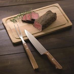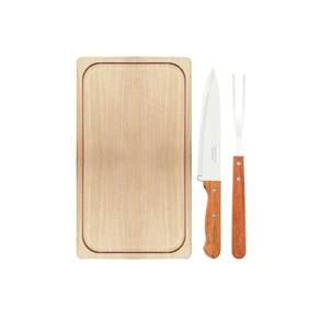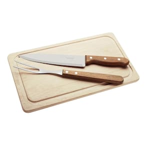 O Kit para Churrasco Dynamic da Tramontina é a companhia perfeita para tornar o churrasco em família ainda mais especial. A faca de oito polegadas possui lâmina de aço inox e garante maior durabilidade do fio devido ao tratamento térmico. A lâmina do garfo conta com maior espessura e uma estampagem do aço que garante maior resistência, evitando deformações. Ambos possuem cabos em madeira natural que dão um ar elegante às peças tornando-as confortáveis e muito fáceis de usar. A tábua em madeira natural conta com um excelente tamanho de 34x19cm ideal para cortar e servir o churrasco com mais praticidade, tornando esse kit mais completo. Peças Inclusas 1 Tábua 34x19cm1 Faca Chef 8" Dynamic 31,7cm1 Garfo Trinchante Dynamic 29,8cm