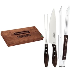 Contém: 1 faca para carne 8", 1 garfo trinchante e 1 pegador