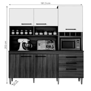 Se procura uma cozinha que possui todos os compartimentos que precisa para deixar utensílios, louças e alimentos organizados e de fácil alcance para a rotina, o Kit Cozinha Ébano é o móvel ideal. Enquanto os nichos internos recebem os itens maiores, as gavetas acomodam muito bem os talheres, panos de prato ou objetos menores que ainda precisam ficar por perto. Tudo isso sem que nada fique fora do lugar e atrapalhe a harmonia do cômodo. Ótima para deixar o espaço com uma cara leve e muito mais convidativa!