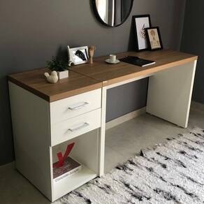 Escolha perfeita para quem busca móveis funcionais, sofisticado e de alta qualidade. Com design clean e minimalista, ele se adapta a diversos estilos de decoração, seja em um escritório corporativo, Home Office ou até mesmo no quarto, garantindo um toque de requinte e modernidade ao ambiente. Kit fabricado com tampo de Tamburato de 37mm, um material robusto e resistente que assegura durabilidade e um acabamento impecável. Com acabamento em BP, garante resistência a riscos, uniformidade nas cores e maior durabilidade, assegurando um produto que se mantém como novo por muito mais tempo. Gaveteiro com duas amplas gavetas, oferece espaço suficiente para manter seus itens essenciais sempre organizados e acessíveis. Mesa com amplo espaço com tamanho ideal para organização e produtividade. Este móvel chegará em sua casa separado em 02 Volumes.