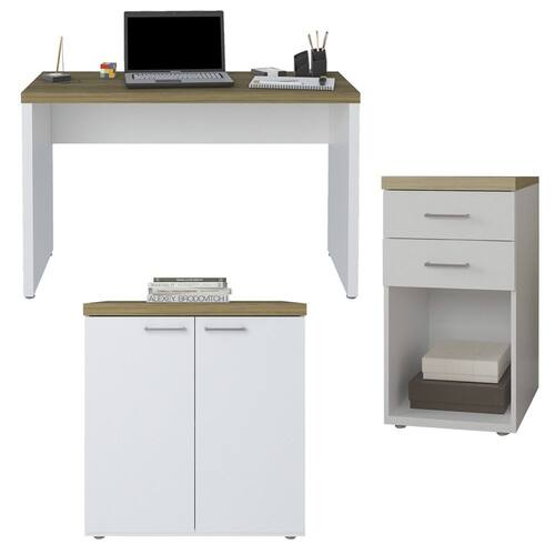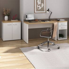 Escolha perfeita para quem busca móveis funcionais, sofisticado e de alta qualidade. Com design clean e minimalista, ele se adapta a diversos estilos de decoração, seja em um escritório corporativo, Home Office ou até mesmo no quarto, garantindo um toque de requinte e modernidade ao ambiente. Conjunto fabricado com tampo de Tamburato de 37mm, um material robusto e resistente que assegura durabilidade e um acabamento impecável. Com acabamento em BP, garante resistência a riscos, uniformidade nas cores e maior durabilidade, assegurando um produto que se mantém como novo por muito mais tempo. Gaveteiro com duas amplas gavetas, oferece espaço suficiente para manter seus itens essenciais sempre organizados e acessíveis. Balcão Multifuncional, com capacidade de armazenamento, conta com uma ampla prateleira, ideal para guardar objetos variados e manter qualquer espaço mais arrumado e agradável. Mesa com amplo espaço com tamanho ideal para organização e produtividade. Este móvel chegará em sua casa separado em 03 Volumes.