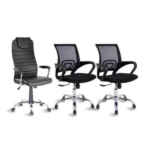 O kit para escritório 3 peças Diretor e Presidente preto Healer é ideal para você que busca tudo isso. Composto por duas cadeiras diretor Clint que são super confortáveis, com regulagem de altura em gás, reclinação leve no encosto que contém acabamento em tela.