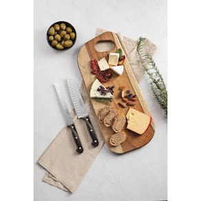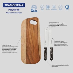 Contém: 1 faca para frios 7", 1 faca para pão 7'' e 1 tábua de corte