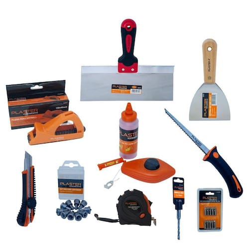 Kit para Drywall Profissional PlasterA Plaster ferramentas preparpou um kit especial, especializado em materiais para drywall. Onde você encontra os principais materias, para realizar o serviço com facilidade e qualidade garantida.Nesse Kit contém 10 peças:- Espátula aço inox 10 cm- Espátula aço inox 25mm- Estilete 18mm- Linha de bater com nivel- Bits com Limitador- Broca Sds 6- Plaina para Drywall- Trena 5m com 3 travas- Serrote de ponta- Bits ProA Plaster Ferramentas conta com uma extensa linha de produtos para Gesseiros e profissionais do ramo da construção.