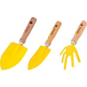 CONJUNTO PARA JARDIM 3 PEÇAS CABO MADEIRA VONDER AMARELO