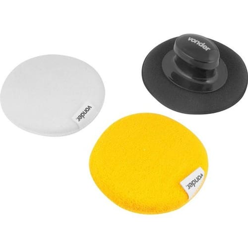 Indicado para uso geral na limpeza externa e interna de automóveis, barcos, motos, vitrines, fachadas, entre outrosProporciona fácil limpeza e polimento com melhor acabamentoDiâmetro 13cmComposição do kit:01 Suporte com sistema fixa fácil.02 esponjas de microfibra.01 esponja de espuma.