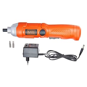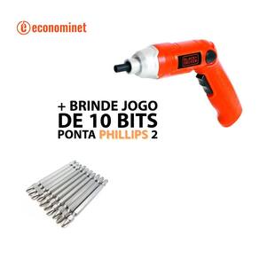 Parafusadeira bivolt 3,6V 9036 Black & Decker vem com uma bateria de 3,6V e é extremamente leve para que você possa apertar ou afrouxar parafusos com mais rapidez e praticidade. Ela vem com capacidade de uso em 2 posições distintas, sendo perfeita para alcançar locais de difícil acesso, permitindo assim que sua aplicação possa ser concluída com menor dificuldade. Inclui duas pontas: Fenda e Philips. Informações Técnicas: Marca: BLACK+DECKER Modelo: 9036-BR Cor: Laranja Voltagem: 3.6 Volts Tipo de fonte de energia: Bateria Rotações por minuto: 180 rpm *************************************************************************************************** Jogo 10 Pontas Dupla Bits Phillips 2 Para Parafusadeira em Aço Cromo Vanádio com Alta Qualidade