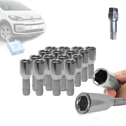Kit Parafuso Multi Allen Gol Saveiro Up Voyage 16 pç + chave Descrição - Jogo Parafusos Roda Modelo Allen Lob - Quantidade : 16 Peças + Chave - Medidas : M12 -1,5 x 36 x 63,6 x CH/SW 17 19 mm - Aplicação - Linha VW - Rodas Dianteiras e Traseiras - Material : Aço Cromado de Ótima Qualidade