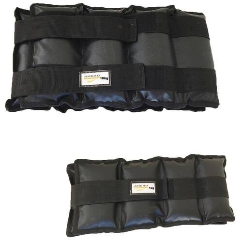 Kit com 2 Pares de Caneleiras/Tornozeleiras, sendo que 1 par de peso 10kg preta, e 1 par de peso 1kg.
