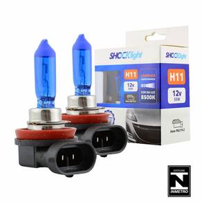 - 1 par de lâmpadas super brancas H11 para carrosEssas lâmpadas super brancas H11 dão um ótimo efeito estético com sua iluminação mais branca que as lâmpadas autênticos assim proporcionando maior segurança ao dirigir de noiteA fabricação dessas lâmpadas super brancas é feita com vidro em quartzo que aumenta a resistência térmica e dá maior durabilidade e vida útil para as lâmpadas. Em sua composição é acrescida a proteção UV que éTecnologia super branca, luz mais branca e maior facho de luz, bulbo de vidro na cor azul para melhor aparência. Com proteção UV.O efeito estético causado com as lâmpadas super brancas de 8500k vão te surpreender.Kit com 2 lâmpadas H11 de 8500k 12v 55w na cor branca e um par de pingo W5W 12v também na cor branca para combinar com seu farolAtenção: H11 é o tipo de encaixe que a lâmpada tem no farol, ou seja, o modelo do plug, confirme o modelo de lâmpada de seu carro caso não tenha certeza! FICHA TÉCNICA:MODELO: SB H11 8500KPOTÊNCIA: 55WALIMENTAÇÃO: 12VTECNOLOGÍA: HALÓGENA SUPER BRANCAENCAIXE: H11BASE: PGJ19-2CONEXÃO: Conector em LPROTEÇÃO UV: SIM