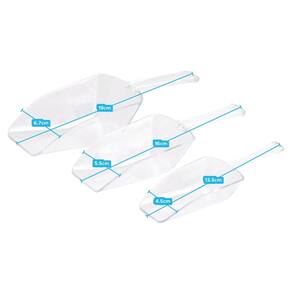 - kit com 3 pás medidoras de tamanhos p, m e g - fabricadas em acrílico transparente de alta qualidade - ideal para medir diversos tipos de alimentos e ingredientes - design ergonômico e fácil de usar