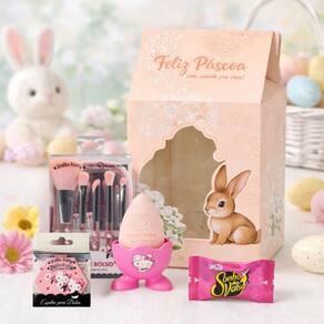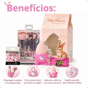 Benefícios Principais Kit completo com itens úteis para o dia a dia Caixa temática de Páscoa decorada e pronta para presente Pincéis funcionais ideais para maquiagem completa Esponja para aplicação uniforme de produtos líquidos e cremosos Espelho de bolsa prático para retoques rápidos Acompanha bombom Sonho de Valsa como mimo especial