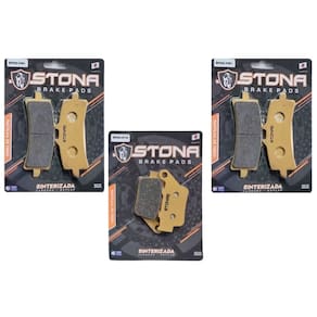 KIT COMPLETO PASTILHAS STONA SINTERIZADA KEVLAR E CARBONO Aplicação: -Tiger 850 Sport 2021 até 2023 -Tiger 1200 GT 2022 em diante -Tiger 1200 GT Explorer 2022 em diante -Tiger 1200 GT Pro 2022 em diante -Tiger 1200 Rally Explorer 2022 em diante -Tiger 1200 Rally Pro 2022 em diante -Daytona 675 R Triple 2013 até 2018 (Atenção compativel com modelo R ) Itens inclusos: 03 pares de pastilhas para 3 discos de freio Produzida através do processo de sinterização originado pela composição de pós metálicos Entre eles cobre aço, Bronze, Cerâmica, Grafite, CARBONO E KEVLAR compactado por pressão Submetido a temperatura elevada ligeiramente menores que sua temperatura de fusão Este processo cria uma peça única e sólida, Formando um bloco homogêneo da massa, Aplicado a uma placa de aço carbono. Desenvolvida por engenheiros japoneses e fabricado na China. -Excelente desempenho. -Maior tolerancia as altas temperaturas em frenagens longas e curtas. -Aquecimento rápido e frenagem precisa e mais segura. -Maior segurança em dias de chuva -Baixo ou nenhum ruido -Oferece maior durabilidade. -Efeciencia e sensibilidade durante a frenagem. -Menor desgaste do conjunto pastilhas e discos. -Economia e menor esforço para o sistema de freio. -Ref Dianteira AP Racing 441/501 - PTZ900 / Traseira Ref PTZ213GT - AP Racing 275 Codigo do produto: 2x SKU 1503 - PASTILHA DIANTEIRA SINTER F051 - 02 CARTELAS 1x SKU 1141 - PASTILHA TRASEIRA SINTER R124 Com duvidas? Nos escreva que te responderemos o mais rápido possível! Box Racing - Venda Autorizada Stona Brake Pads