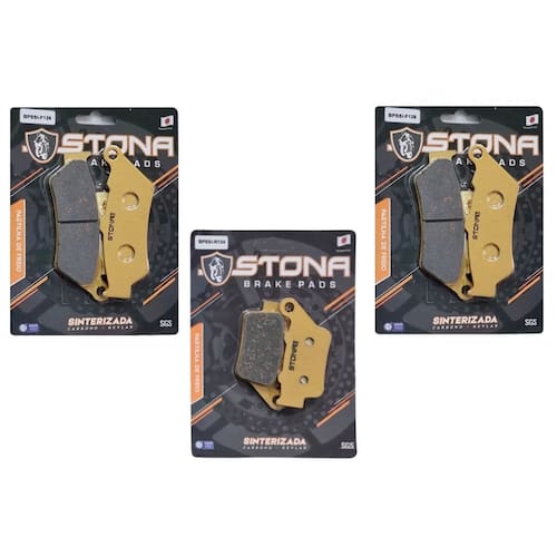 KIT COMPLETO PASTILHAS STONA SINTERIZADA KEVLAR E CARBONO PARA 03 DISCOS APLICAÇÃOAprilia: 660 Tuareg 2022-2023INDIAN: 1200 Rogue 2022-2023 Itens inclusos: 03 pares de pastilhas Produzida através do processo de sinterização originado pela composição de pós metálicosEntre eles cobre aço, Bronze, Cerâmica, Grafite, CARBONO E KEVLAR compactado por pressãoSubmetido a temperatura elevada ligeiramente menores que sua temperatura de fusãoEste processo cria uma peça única e sólida,Formando um bloco homogêneo da massa, Aplicado a uma placa de aço carbono.Desenvolvida por engenheiros japoneses e fabricado na China.-Ref DIanteira PTZ209 Ap Racing 274 - Traseira PTZ213 Ap Racing 275 Codigo do produto:2x SKU 1139 PASTILHA DIANTEIRA SINTER F126 02 CARTELAS1x SKU 1141 PASTILHA TRASEIRA SINTER R124 Com duvidas? Nos escreva que te responderemos o mais rápido possível!Box Racing - Venda Autorizada Stona Brake Pads