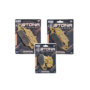 KIT COMPLETO PASTILHAS STONA SINTERIZADA KEVLAR E CARBONO PARA 03 DISCOS ----------------------------------------- Aplicação: • Ninja 650r 2012 até 2016 • Kawasaki Z750 2004 até 2006 • Ninja 650 2012 até 2015 Itens inclusos: 03 pares de pastilhas para 3 discos de freio Produzida através do processo de sinterização originado pela composição de pós metálicos Entre eles cobre aço, Bronze, Cerâmica, Grafite, CARBONO E KEVLAR compactado por pressão Submetido a temperatura elevada ligeiramente menores que sua temperatura de fusão Este processo cria uma peça única e sólida, Formando um bloco homogêneo da massa, Aplicado a uma placa de aço carbono. Desenvolvida por engenheiros japoneses e fabricado na China. 1x PTZ231 1x PTZ229 AP 304 305 / Traseira PTZ192 Ap 287 Itens inclusos: - 02 Pares de pastilhas dianteira - 01 Par de pastilhas traseira Codigo do produto: 1x SKU 1147 - PASTILHA DIANTEIRA SINTER F049 1x SKU 2349 - PASTILHA DIANTEIRA/TRASEIRA SINTER FR048 1x SKU 1140 - PASTILHA TRASEIRA SINTER R149 Com duvidas? Nos escreva que te responderemos o mais rápido possível! Box Racing – Venda Autorizada Stona Brake Pads