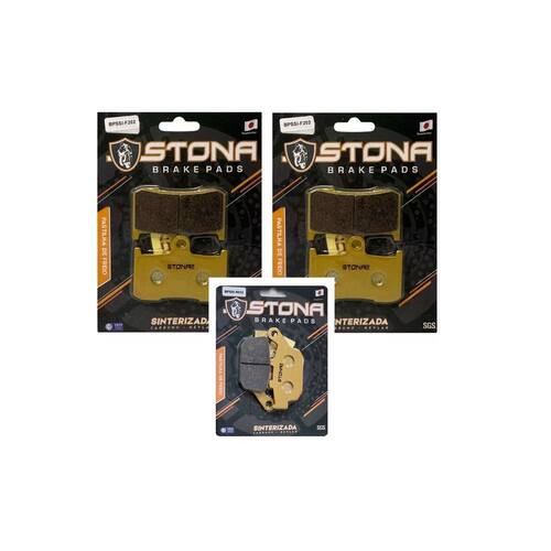 KIT COMPLETO PASTILHAS STONA SINTERIZADA KEVLAR E CARBONO Aplicação: Daytona 675i 2006 até 2008 Itens inclusos: 03 pares de pastilhas para 3 discos de freio Produzida através do processo de sinterização originado pela composição de pós metálicos Entre eles cobre aço, Bronze, Cerâmica, Grafite, CARBONO E KEVLAR compactado por pressão Submetido a temperatura elevada ligeiramente menores que sua temperatura de fusão Este processo cria uma peça única e sólida, Formando um bloco homogêneo da massa, Aplicado a uma placa de aço carbono. Desenvolvida por engenheiros japoneses e fabricado na China. -Excelente desempenho. -Maior tolerancia as altas temperaturas em frenagens longas e curtas. -Aquecimento rápido e frenagem precisa e mais segura. -Maior segurança em dias de chuva -Baixo ou nenhum ruido -Oferece maior durabilidade. -Efeciencia e sensibilidade durante a frenagem. -Menor desgaste do conjunto pastilhas e discos. -Economia e menor esforço para o sistema de freio. -Ref dianteira AP Racing 382 90-FM347 / Traseira 90-FM140-2 - PTZ140 - AP Racing 481 Codigo do produto: 2x SKU 333 - PASTILHA DIANTEIRA SINTER F202 - 02 CARTELAS 1x SKU 2347- PASTILHA TRASEIRA SINTER R033 Com duvidas? Nos escreva que te responderemos o mais rápido possível! Box Racing - Venda Autorizada Stona Brake Pads