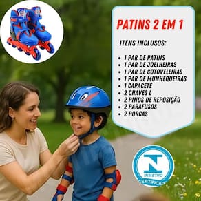 Kit patins com acessórios de segurança azul - tam. 30-33 Kit patins com acessórios de segurança azul Você já parou para pensar como é importante para as crianças se divertirem de forma segura enquanto aprendem a patinar Sem o equipamento adequado, elas podem se machucar e perder a confiança, o que pode afastá-las da prática de esportes. Com o nosso kit de patins, cada passeio se transforma em uma nova aventura ele é perfeito para crianças que estão começando ou já têm alguma experiência. O modelo ajustável tamanho 30 ao 33 cresce junto com seu pequeno, garantindo conforto e economia. Além disso, o kit inclui capacete, joelheiras, cotoveleiras e munhequeiras, tudo pensado para proteger e proporcionar tranquilidade aos pais. Estimule o equilíbrio, a coordenação motora e o amor pelos esportes desde cedo Benefícios - segurança garantida com equipamentos de proteção - ajustável para acompanhar o crescimento da criança - estimula habilidades motoras e a prática de esportes - diversão em família e momentos inesquecíveis Especificações técnicas - dimensões patins: alt.: 26cm x larg.: 10cm x compr.: 30cm - peso: 1,40kg - dimensões capacete: alt.: 13cm x larg.: 20cm x compr.: 26cm - peso: 0,90g - dimensões joelheira: alt.: 13cm x larg.: 1cm x compr.: 13cm - peso: 0,33g - dimensões cotoveleira: alt.: 13cm x larg.: 1cm x compr.: 1cm - peso: 29g - dimensões munhequeira: alt.: 13cm x larg.: 1cm x compr.: 8cm - peso: 1,40kg - tamanho p 30-33 - composição: corpo em polipropileno pp , rodas em pvc 72mm - registro inmetro: 003005/2021 Conteúdo da embalagem - 01 par de patins - 01 par de joelheiras - 01 capacete de proteção - 01 par de cotoveleiras - 01 par de munhequeiras - 02 chaves l - 02 pinos de reposição - 02 parafusos e 02 porcas Não deixe seu pequeno perder a chance de se divertir com segurança adquira já o kit de patins e veja a alegria nos olhos dele Informações importantes sobre a compra - com de fábrica Dúvidas frequentes: 2 - em quanto tempo meu pedido será enviado 3 - é confiável fazer esta compra Resposta: desde a criação da nossa empresa já temos milhares de clientes satisfeitos em outras lojas online. Somos uma loja oficial neste marketplace. Além de você ter todas as garantias desta plataforma, ainda lhe oferecemos de fábrica. 4 - os produtos possuem Resposta: sim, oferecemos de 30 dias em todos nossos produtos. Caso ocorra qualquer problema iremos tratar da melhor forma para resolver o ocorrido. 5 - essa compra é segura Resposta: sim, oferecemos total segurança na sua compra bem como sigilo dos seus dados. 6 - e se eu não gostar do produto, terei meu dinheiro de volta Resposta: de acordo com o cdc código de defesa do consumidor todo cliente de compras online tem até 7 dias para devolver o produto em caso de arrependimento. E você não terá custo na devolução. Lembrando que você será reembolsado em 100% do valor da compra. Caso você tenha alguma dúvida, nos envie uma mensagem e responderemos o mais rápido possível. Marca: Não Informado