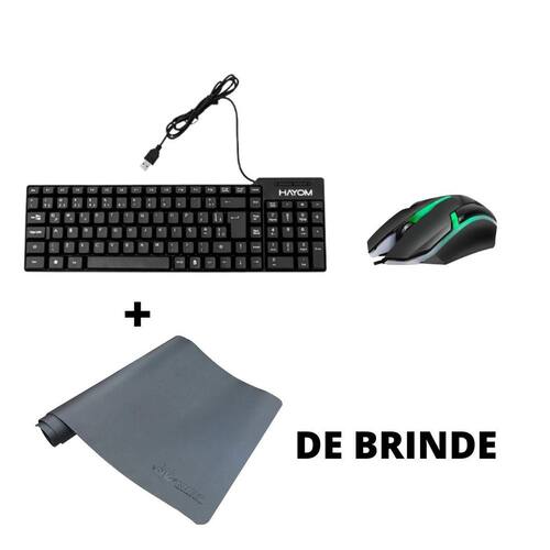 Kit periféricos Mouse pad 90x40 Dimensões: 900x400x2mm cxlxa Material: couro Confortável e com ótima estabilidade Tecido antiderrapante Conteúdo da embalagem: 1 mouse pad knup kp-mp202 Mouse gamer - mu2908 Mouse gamer com led hayom mu2908 Para você que gosta de jogar com praticidade, o mouse gamer da hayom mu2908 é o produto ideal. Além de 3 milhões de clicks e botões especiais que facilitam o seu clique, o mouse ainda conta com o controle de dpi que varia de 800 a 2400, um ótimo designer ergonômico, led rgb e com encaixe de todos seus dedos. - para trabalhar desde casa com o computador ou aproveitar momentos de lazer, você precisa de conforto e facilidade de movimento. Com o seu hayom mu2908 encontre o que você está procurando em um único dispositivo com a melhor tecnologia. - adaptado aos seus movimentos - o mouse de jogo vai oferecer a você a possibilidade de fazer a diferença e tirar proveito dos seus jogos. Sua conectividade e sensor suave ajudarão a você se mover rapidamente pela tela. - a funcionalidade ao alcance da sua mão - o sistema de detecção de movimento óptico lhe permitirá mover o cursor de uma forma mais precisa e sensível do que os sistemas tradicionais. - velocidade e confiabilidade dos botões - com os seus 3 botões você poderá ter maior controle e independência para executar. - adequado para fácil transporte - navegue rapidamente pelos documentos e sites da web graças ao seu design ultra-fino, ergonômico, leve e conveniente para transportar onde você quiser ou viajar. Características: - marca: hayom - modelo: mu2908 Especificações: - cabo usb de 150cm - botão para alternar dpi - plug and play - 3 botões funcionais - led brilhante gamer - cabo revestido com tecido - compatível com windows e Dimensões: - embalagem l/a/p : 80 / 45 / 165 mm Conteúdo da embalagem: - mouse hayom gamer, usb led, 03 botões Teclado basico usb - tc3201 Especificações técnicas: - marca: hayom - modelo: tc3201 - cor: preto - teclado com fio tamanha aprox. Do cabo 1m,20cm - padrão abnt 2 - teclas duráveis - plug and play - design compacto com teclas numéricas - acabamento: resistente - regulador de altura - compatibilidade: windowsxp/7/8/10 - 103 teclas - tamanho aprox.: 39 c x11 l x1 a cm - peso aprox.: 0,304g Ean: 7893186078214