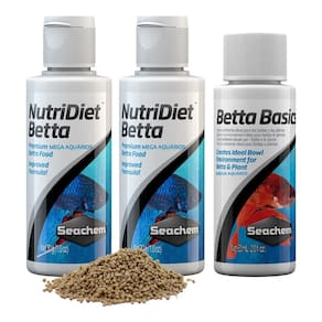 Kit premium para cuidados básicos de peixe Betta - Ração NutriDiet Betta 30g + Seachem Betta Basics condicionador para ajuste de PH e remover o cloro da água