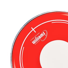 4 Peles RDT2 Vermelha Dot Filme Duplo Hidráulica Williams e 14 porosa para caixa Pele de filme duplo VERMELHA transparente com óleo e Dot Espessura: 7 mil milésimo de polegada ou 0.188mm cada filme Pele com bola branca central indicada Focada em um som de frequências intermediárias, com ataque definido, Controle de harmônicos e excelente durabilidade