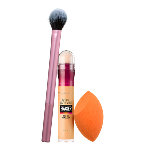 Também acompanha uma esponja para maquiagem que ajuda a espalhar o corretivo ou a base de maneira uniforme fazendo com que a maquiagem se funda à pele, dando um acabamento imperceptível e um pincel ideal para espalhar uma leve camada de pó, esfumar o corretivo ou aplicar o iluminador em pontos estratégicos como têmporas e centro do rosto.