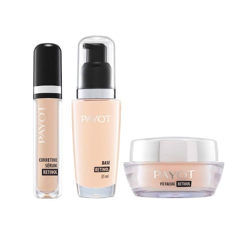 1- corretivo Sérum Retinol Payot -10 O Corretivo Sérum Retinol é maquiagem e tratamento cosmético em um só produto. Com ativos como Retinol Vegetal, Niacinamida, Pantenol e Biocolágeno, que ajudam a minimizar a aparência de rugas, linhas de expressão. disfarça imperfeições, olheiras, sinais de cansaço e uniformiza o tom da pele. possui cobertura média, com acabamento de efeito natural, rápida absorção e sem craquelar. para todos os tipos de pele.